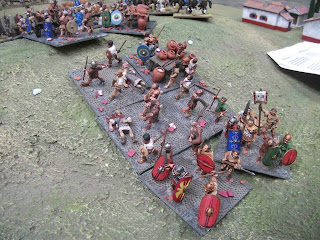 The battle ended with the defeat of Ptolemy. The phalanx units in the centre broke through the opponents and began to roll up the units to the left and right. The Elephants defeated their Ptolemaic counterparts and the Agema units went on the victory despite Antiochus being killed in the fighting (loss of six coins alone for that!). Ptolemy himself was also wounded. I confess that some of the pictures were from some of the other games but they do illustrate the general progress of the game. This was the second run of the game in which Antiochus was killed which gave rise to a series of Zombie related novels the first entitled "What Antiochus is dead again?" Simon and a second "Well Antiochus is still dead" Matthew. A very good game and an excellent weekend. Well don Simon and Mark